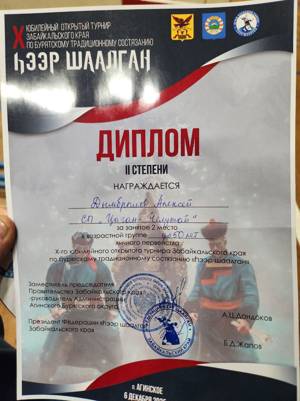 6 декабря в окружном центре п. Агинское состоялся 10-й юбилейный турнир Забайкальского края, посвящённый бурятскому традиционному состязанию по разбиванию хребтовой кости («hээр шаалга») и игре «Шагай наадан». Это зрелищное этнособытие собрало 35 команд из Забайкальского края, Республики Бурятия, Иркутской области и Монголии, которые приехали продемонстрировать свою силу и мастерство.